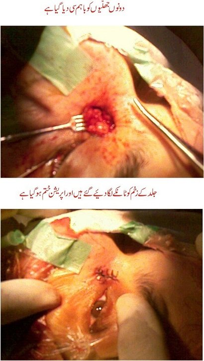ان مریضوں میں چونکہ نکاس کی نالی بند ہو چکی ہوتی ہے اسلئے اس آپریشن میں ہڈی کو توڑ کر نکاسی یعنی drainage کیلئے ایک متبادل راستہ بنایا جاتا ہے۔  اس آپریشن کے کچھ مناظر نیچے دکھائے گئے ہیں